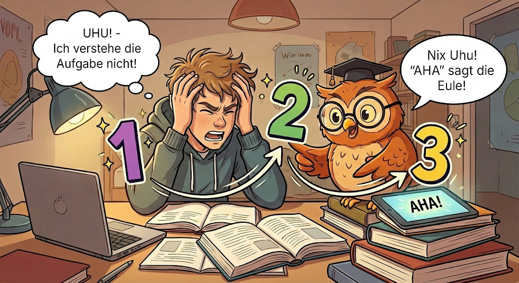 123aha.com ist die intelligente All-in-one-Lösung für alle, die das Beste aus ihrer Schul- oder Studienzeit herausholen wollen – egal ob zur Notenverbesserung in Form von Nachhilfe oder für maximale Zeiteffizienz in Form von akademischer Unterstützung. Unsere KI-Buddys transformieren mühsames Büffeln in smartes Lernen, indem sie Inhalte individuell auf die persönlichen Interessen des Schülers zuschneiden und so die Motivation auf ein neues Level heben. Schüler meistern Hausaufgaben durch den Übungs-Buddy souverän und selbstständig, während Studenten mit der automatisierten Skripterstellung aus Vorlesungs-PDFs wertvolle Tage an Vorbereitungszeit sparen. Eltern profitieren dabei nicht nur von einer massiven Kostenersparnis gegenüber herkömmlicher Nachhilfe, sondern vor allem von einem entspannten Familienalltag ohne Lernstress. Ob zur gezielten Schließung von Wissenslücken oder als Performance-Boost für Bestnoten: 123aha.com schafft die Freiheit für ein ausgeglichenes Leben neben Schule und Uni. Und auch Lehrer und Schulen profitieren, denn wir haben das Chat-GPT-Problem gelöst: Anstatt einfach das Ergebnis zu präsentieren, unterstützt unsere Lern-KI nämlich beim Lösungsweg - und zwar auf eine Weise, dass das Gelernte nachhaltig verstanden und angewandt werden kann; bei der nächsten Prüfung und generell im späteren Leben.